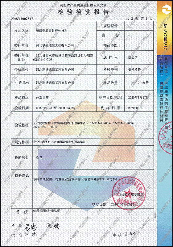 河北聯(lián)盛通信工程有限公司是一家從事玻璃鋼避雷針研發(fā)、機場易折易碎桿研發(fā)、銷售飛機通信導航定向設備、航用通信導航定向設備、地面通信導航定向設備、飛機場用電氣信號裝置的生產廠家。主要產品有:玻璃鋼避雷針、機場FOD易折易碎塔架、機場雷達站玻璃鋼易折桿避雷針、機場風向標易折桿、雷達塔架、避雷塔(GFL全系列、GFW全系列、GH全系列、GJT全系列)、通信塔、瞭望塔、監(jiān)控塔、工藝塔、異形鋼結構產品等研發(fā)、生產、銷售為一體的專業(yè)性企業(yè)。我公司現(xiàn)有員工89人,公司下設有工程安裝部、技術部、生產部、業(yè)務部、財務部、售后服務部等部門,廠區(qū)占地面積6200平方米。公司擁有**的生產設備和專業(yè)施工隊伍,使我們能夠快速....